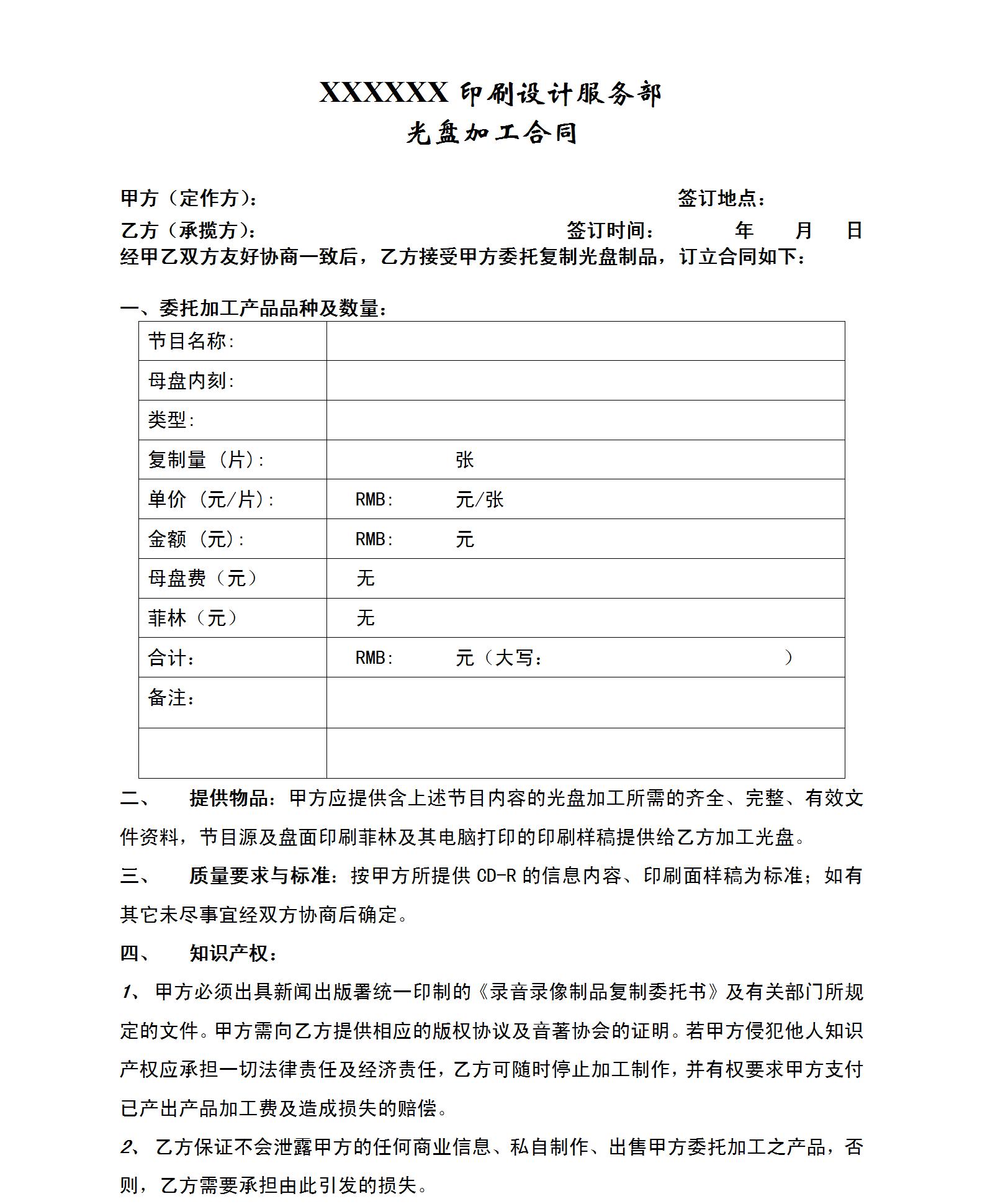 甲方应提供含上述节目内容的光盘加工所需的齐全、完整、有效文件资料,节目源及盘面印刷菲林及其电脑打印的印刷样稿提供给乙方加工光盘。